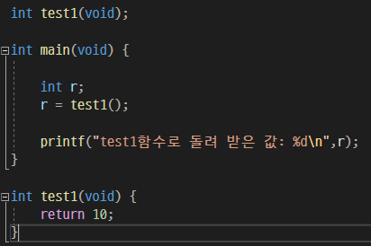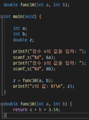 func10()함수를 선언했고 main()함수 안에서 func10()함수를 호출