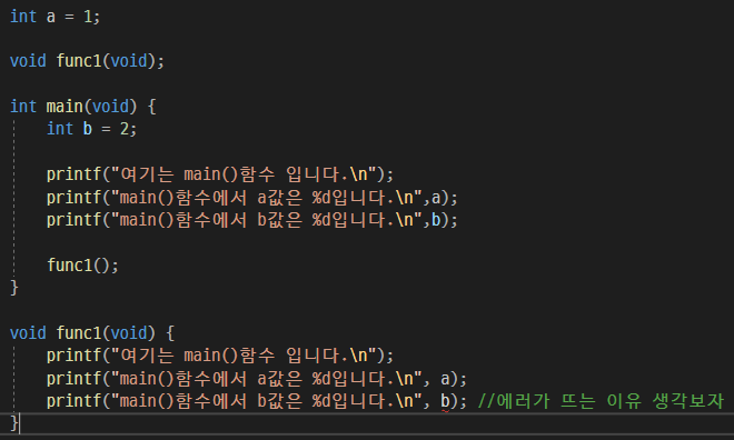 main()함수 안에서 변수 a의 값을 출력하고자 할 때