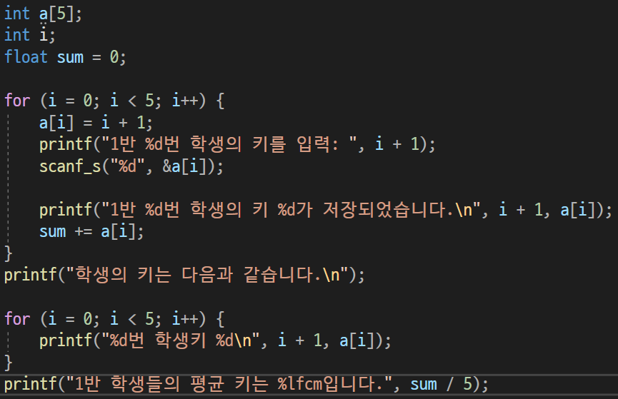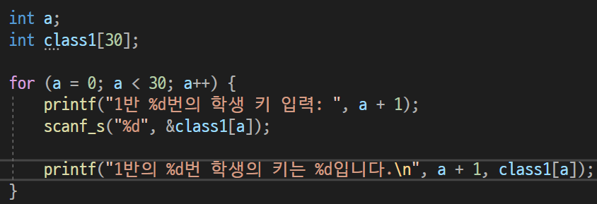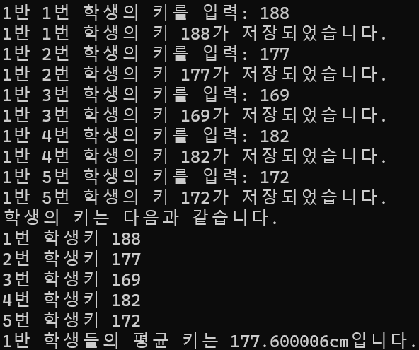 예를 들어 시은이의 반인 1반 학생들의 키를 배열 변수를 이용하여 효율적으로 저장해보자.