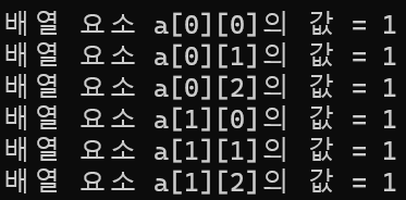 a[2][3]의 2차원 배열 for문을 통해 1로 초기화하는 프로그램을 작성하시오.