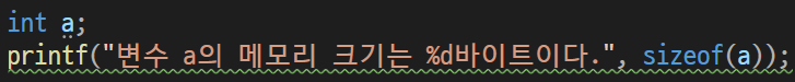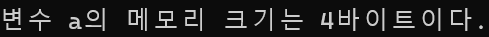 위 코드의 출력값은 "변수a의 메모리 크기는 4바이트이다."가 출력된다.