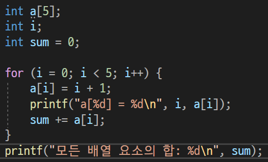 int a[5]라는 것을 a[0], a[1], a[2], a[3], a[4]처럼 연속해서 같은 자료형을 가진 정보를 저장할 수 있는 공간이 할당된다는 뜻이다.