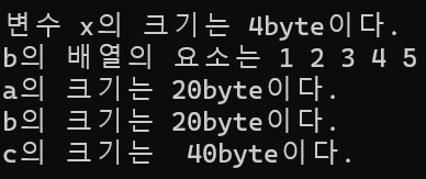 printf("배열 b의 메모리 크기는 %d이다.", sizeof(b));