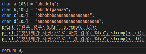 strcmp()함수는 비교결과를 3가지 경우로 분류한다.