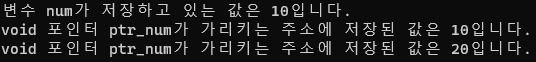 void 포인터는 일반적인 포인터 변수와는 달리 대상이 되는 데이터의 타입을 명시하지 않는 포인터이다.