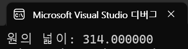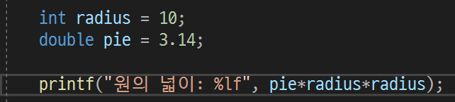 정수형 변수 radius에 10을 할당한 후, radius를 이용하여 원의 넓이를 출력하는 프로그램을 작성하시오.