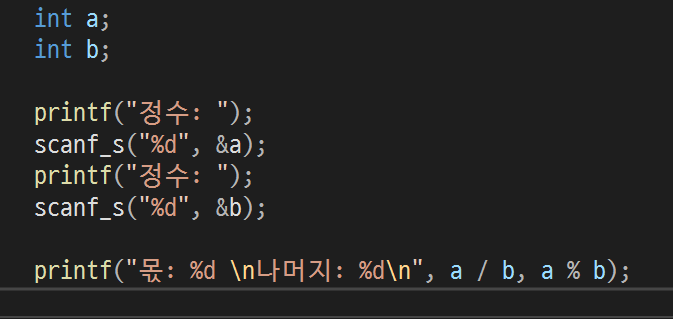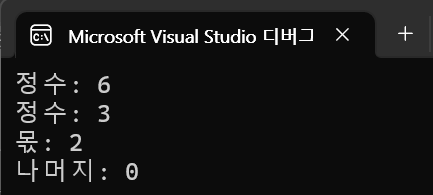 두 개의 정수를 입력받아서 나눗셈 연산을 수행한 후, 몫과 나머지를 출력하는 프로그램을 작성하시오.
