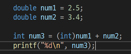 자동 형 변환이 적용되지 않을 경우 수동으로 형 변환을 하는 것