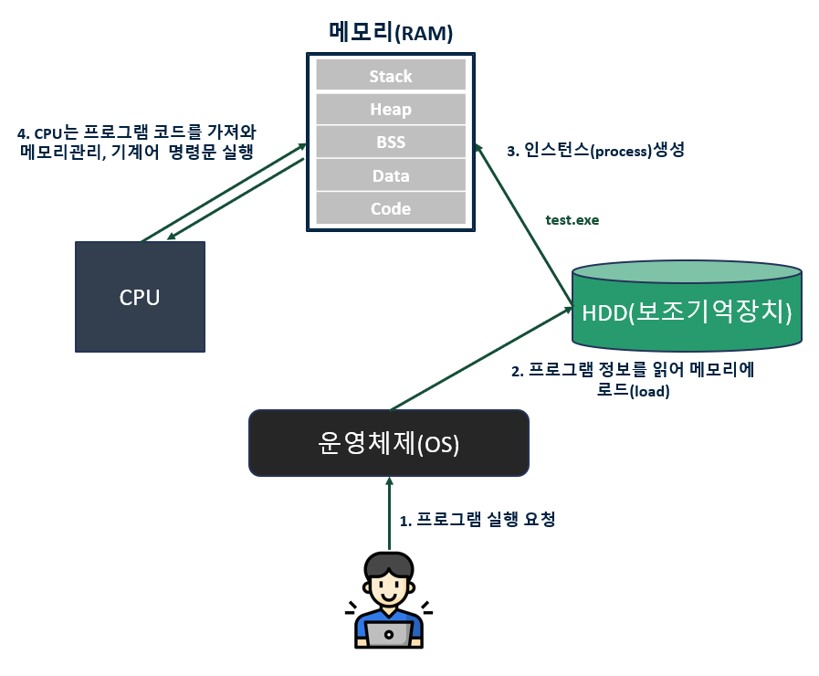 프로그램이 실행되는 과정을 도식화하면 다음과 같다.