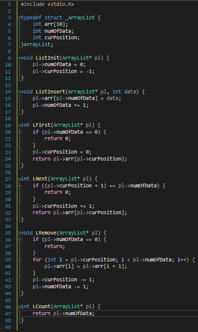 순차리스트함수와 main함수로 분리하여 코드를 작성했다.