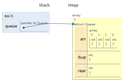 first(먼저)와 rear(후방)이라는 두 개의 변수가 필요하다.