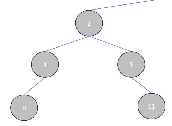 완전이진트리 → 위에서 아래로 왼쪽에서 오른쪽으로 채워진 트리