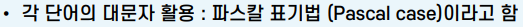즉, 변수, 상수, 함수, 클래스 등의 구분을 사용하는 이름