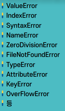- 프로그램 실행 중에 발생하는 오류 = 예외 오류