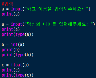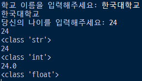 input()함수를 통해 입력 받은 값의 데이터 타입은 무조건 문자열(str)형태