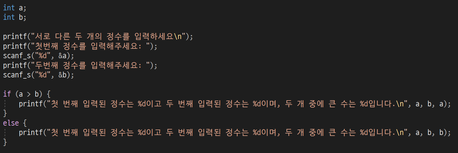 scanf_s라는 함수를 활용해 데이터를 받아 임시저장하고 printf를 통해 값을 출력한다고 생각하면 된다.