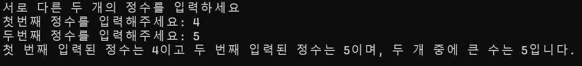 정수 두 개를 입력받아 큰 수를 출력하는 프로그램을 작성하시오.