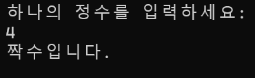 하나의 정수를 입력받아 홀수면 '홀수입니다.를 짝수면 '짝수입니다.를 출력하는 프로그램을 작성하시오.