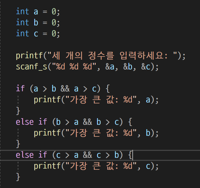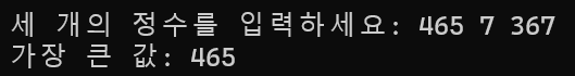 사용자로부터 정수 3개를 입력받아, 가장 큰 값을 찾는 프로그램을 작성하시오