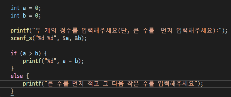 두 개의 정수를 입력 받아서 두 수의 차를 출력하는 프로그램을 작성하시오.