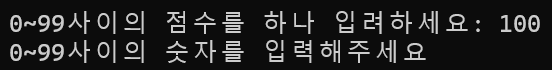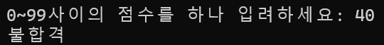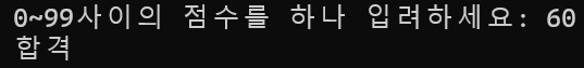0~99사이의 점수를 하나 입력받고 60점 이상이면 "합격", 60점 미만이면 "불합격"을 출력하는 프로그램을 작성하시오